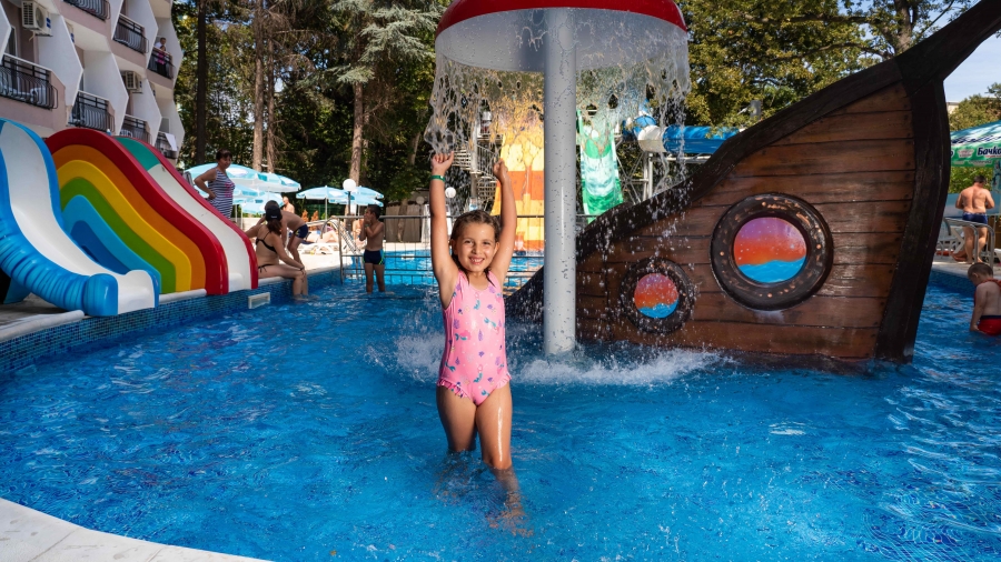 Piscina principală a hotelului Prestige Deluxe Aquapark Club are o secțiune de piscină mică pentru copii pentru cei mai mici oaspeți ai noștri. Hotelul Prestige și Aquapark Club au o piscină individuală pentru copii. Ambele piscine au tobogane potrivite pentru copii - o corabie de pirați, fântână și tobogane!