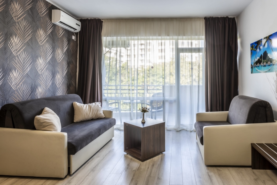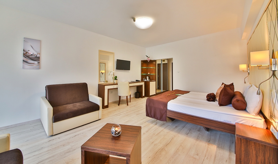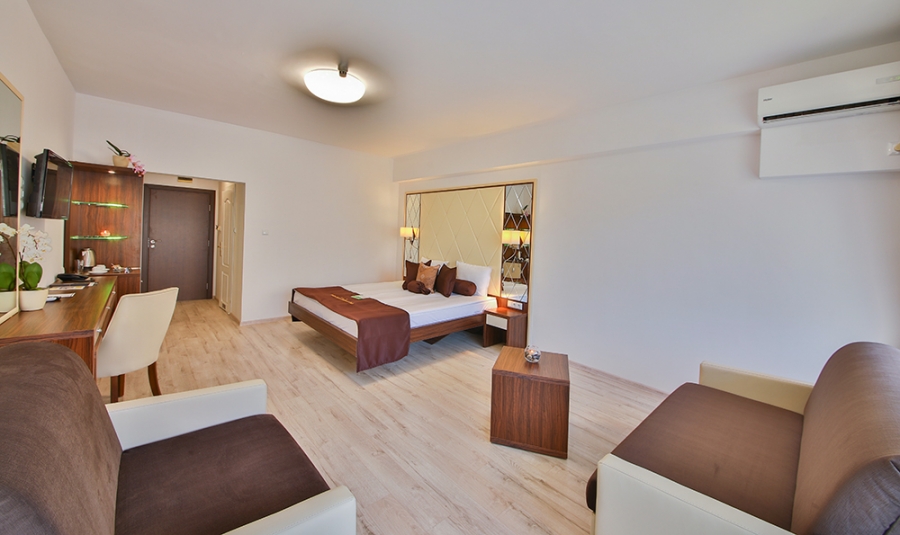 Camera Double Family are un dormitor cu pat dublu, zonă de relaxare, baie privată și balcon cu mobilier de exterior. Camera este dotată cu aer centralizat, seif, mini-frigider, ceainic electric, internet, TV cu canale prin satelit, duș și/sau cadă în baie, uscător de păr și articole de toaletă.