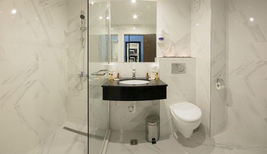- Baie cu cadă, cabină de duş, uscător de păr, accesorii cosmetice